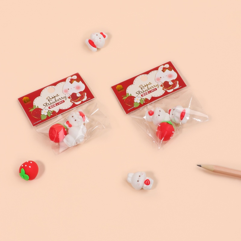 KK-7054 Rabbit Strawberry Sharing Erasers Set