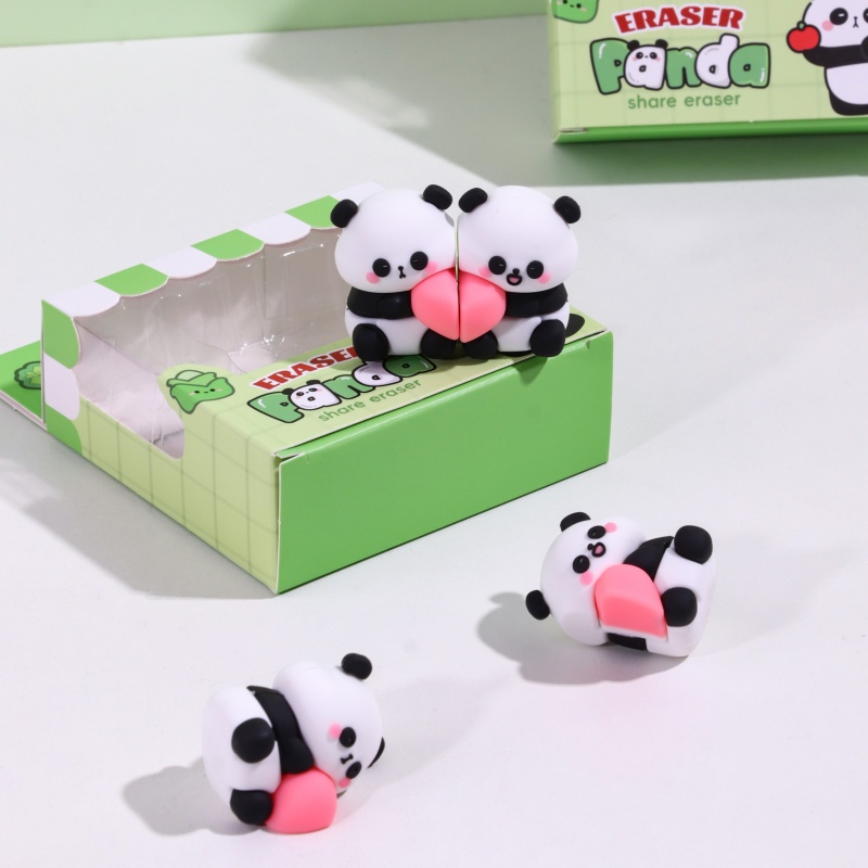 Diligent Panda Sharing Erasers Set